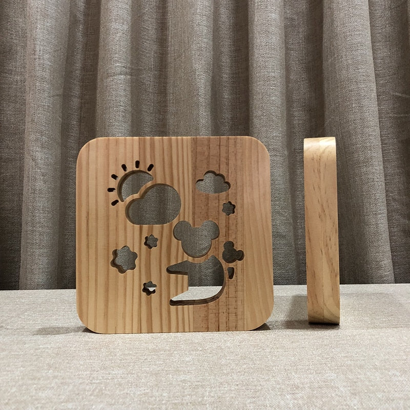 Jedes unserer 3D Koala Baby Nachtlichter aus Holz ist ein kleines Meisterwerk, das mit großer Sorgfalt aus hochwertigem, nachhaltigem Holz gefertigt wird. Das Design besticht durch wunderschön ausgeschnittene Motive: ein süßer Koala, umgeben von einer strahlenden Sonne, flauschigen Wolken und funkelnden Sternen. Diese detaillierten Ausschnitte erzeugen einen faszinierenden 3D-Effekt, sobald das Licht eingeschaltet wird, und lassen die Bilder lebendig erscheinen. Die natürliche Maserung des Holzes verleiht jedem Nachtlicht einen individuellen Charakter und sorgt für eine warme, erdverbundene Ästhetik, die perfekt in eine natürliche und beruhigende Kinderzimmerumgebung passt. Es ist ein Produkt, das die Schönheit der Natur ins Haus bringt und gleichzeitig höchste Sicherheitsstandards erfüllt.