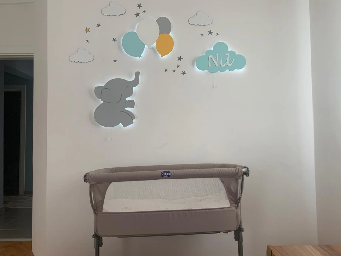Lass diese bezaubernde LED Holz Wandlampe Elefant mit Ballons Teil des täglichen Abenteuers deines Kindes werden. Sie ist mehr als nur eine Lampe – sie ist ein Stück Freude und Geborgenheit, das jeden Raum erhellt und Herzen erwärmt, und somit die perfekte Ergänzung für jedes liebevoll gestaltete Kinderzimmer.