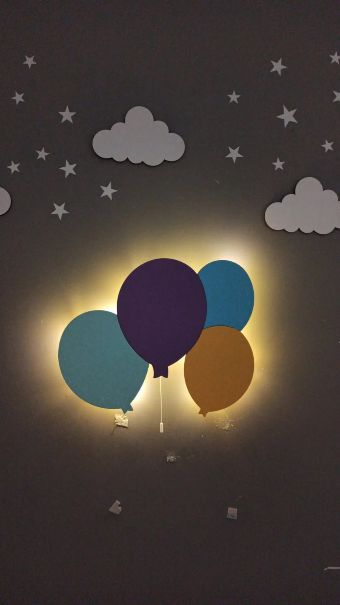 - Einzigartiges Design: Ein liebevoll gestalteter Elefant, der von bunten Ballons getragen wird – perfekt für eine fröhliche und fantasievolle Kinderzimmerdekoration mit der LED Holz Wandlampe Elefant mit Ballons.