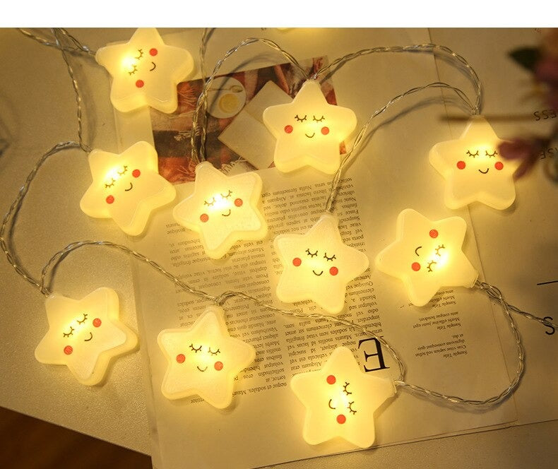 Stell dir vor: Dein Zuhause wird mit einem sanften, gemütlichen Licht erfüllt, das sofort für eine entspannte und fröhliche Stimmung sorgt. Unsere LED Lichterkette mit Sternen warmweiß ist mehr als nur eine Beleuchtung – sie ist ein Stück Magie, das jeden Raum in eine Wohlfühloase verwandelt. Die kleinen, liebenswerten Sterne mit ihren schlafenden Gesichtern strahlen ein so herzliches Licht aus, dass sie nicht nur Kinderaugen zum Leuchten bringen, sondern auch Erwachsenen ein Lächeln ins Gesicht zaubern. Ideal, um deinem Schlafzimmer, Kinderzimmer oder sogar einer kleinen Partydekoration diesen besonderen Touch zu verleihen. Sie sind der perfekte Begleiter für süße Träume und gemütliche Abende.