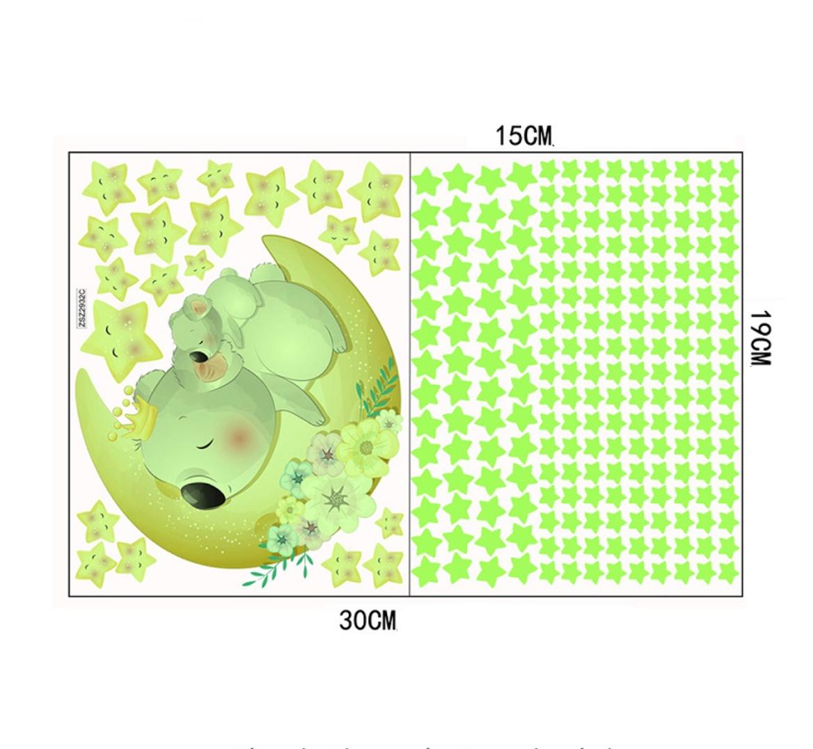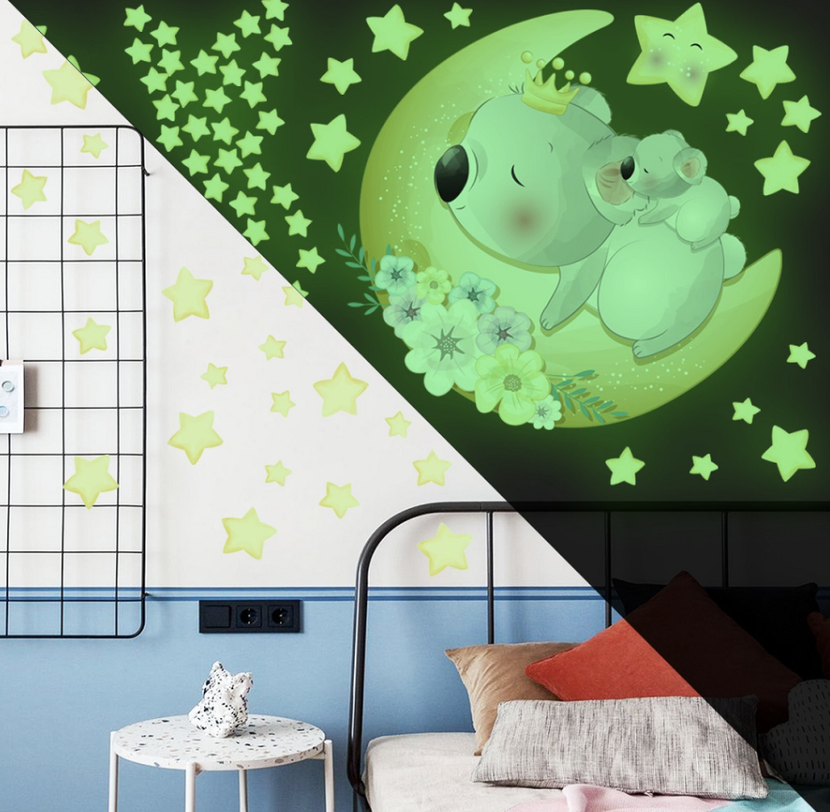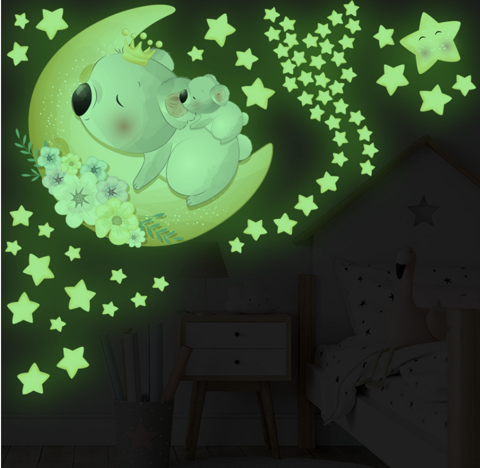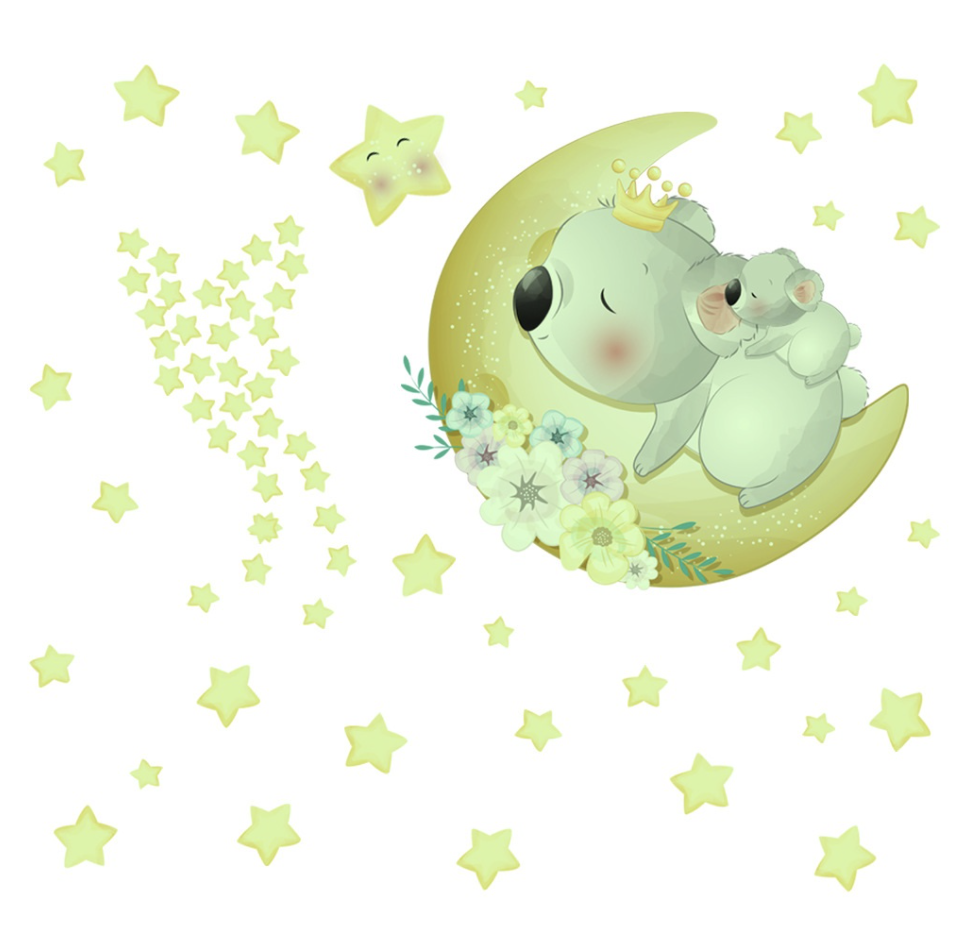 Verzaubere das Kinderzimmer mit unseren Leuchtende Wandsticker Koala Mond und Sterne