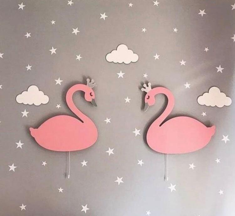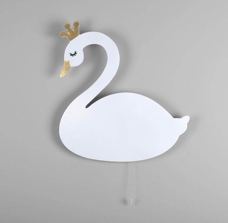 Entdecken Sie unsere zauberhafte Schwan Nachttischlampe aus Holz für Kinder